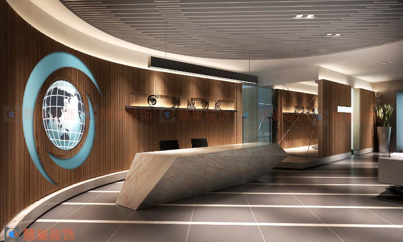 上海办事处位于浦东新区卫亭公路金闻路物流创意园区,是亚洲地区 最大的货运物流公司之一!进户背景采用生态木方通和发光LOGO造型组合而成,地面是石材条纹斜铺,和顶面方通方向一致...