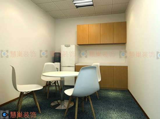 进户大厅主要以面漆拉丝面板做装饰,清水漆吧台,石材台面,地面用象牙白地砖铺设,局部造型吊顶,大厅设置接待功能,员工办公区相对敞开,主管位置设置在每个单元的顶端以显示其在团队中的核心地位,经理室、财务室、会议室隔墙全部用双层玻璃隔断,既具有极强的私密性又可人工调节采光(旋转百叶方位),顶面用吸音较好的阿姆斯壮进口矿棉板吊顶,然后安装LED云光灯,亮度高又节能!