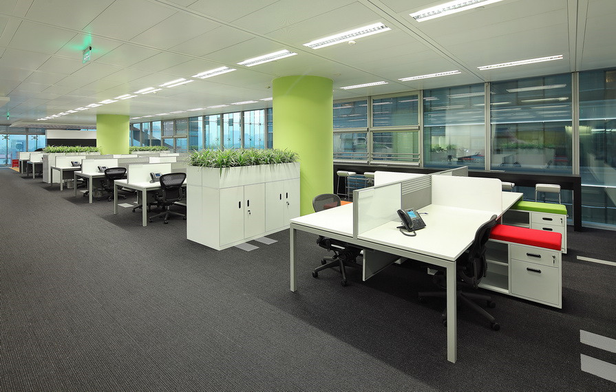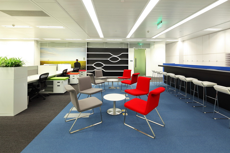 尽量利用原有结构,多在软装方面着手设计,大胆的颜色和拼图相结合,再加上原先的主体结构营造出一种现代时尚前卫的办公环境!